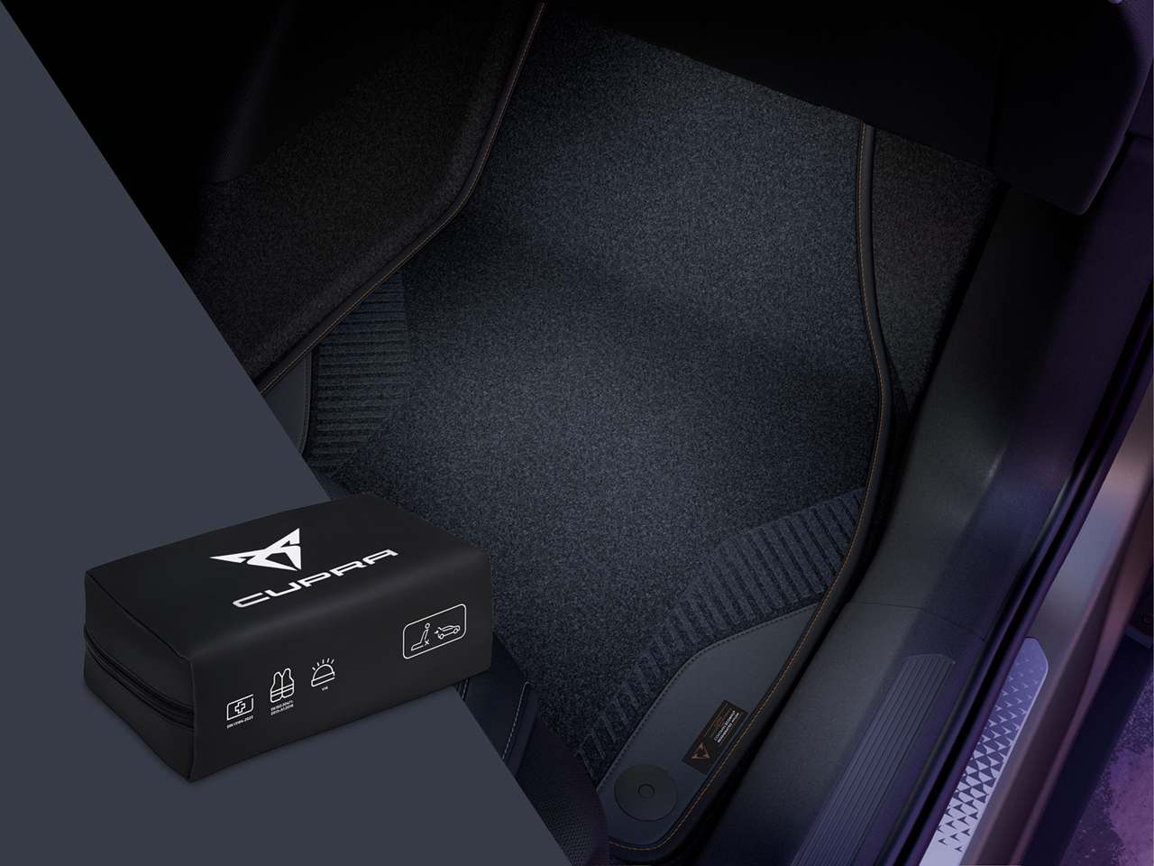 Mats: For a unique driving experience, everything must be unique. The design of the Tavascan mats is. Made from high-quality materials including Econyl® recycled nylon, the Hero finish is exclusive, with graphics engraved directly on the carpet, PVC inserts on both sides and a personalised label. It also features a non-slip bottom for a safe journey. Set of 4 pieces, suitable for left-hand drive vehicles (LHD) and all engine versions.